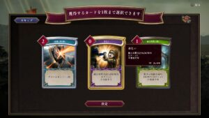 バトル終了時やフィールド上の特定施設を訪れたときに、ランダムで3枚のカードが提示され、どれか1枚を選択して入手することができます。