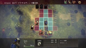 戦闘では、マス目で区切られたマップをプレイヤーと敵が順番に移動と攻撃を繰り返します。