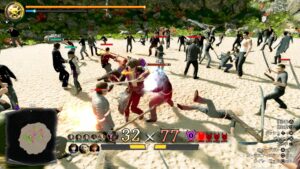 敵戦を撃破すると「船上決戦」を行うことはでき、仲間たちと共に敵船に乗りこみ、船上で殴り合いで勝負をつけることができます。