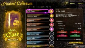 海賊団たちと対戦できる特別な闘技場「パイレーツ・コロシアム」では、「砲撃戦」、「船上決戦」で戦うやりこみ要素があり、お金や名声ポイントを稼ぐことができます。